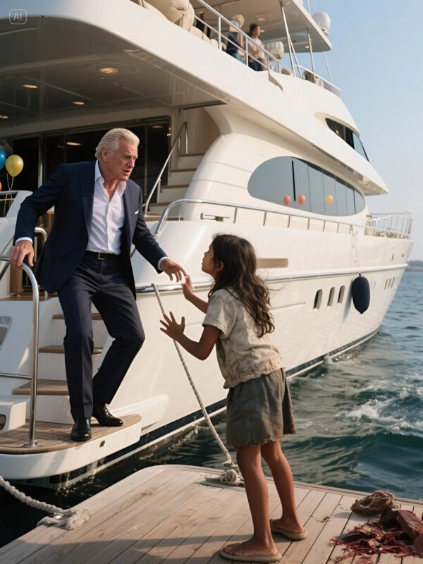 Une petite fille se tenait devant son yacht, figée, comme si le monde s’était arrêté autour d’elle. Elle était pieds nus, ses vêtements étaient abîmés par le temps, et son visage portait une gravité bouleversante pour une enfant de son âge. Les agents de sécurité s’apprêtaient déjà à l’éloigner lorsqu’elle leva les yeux vers David.